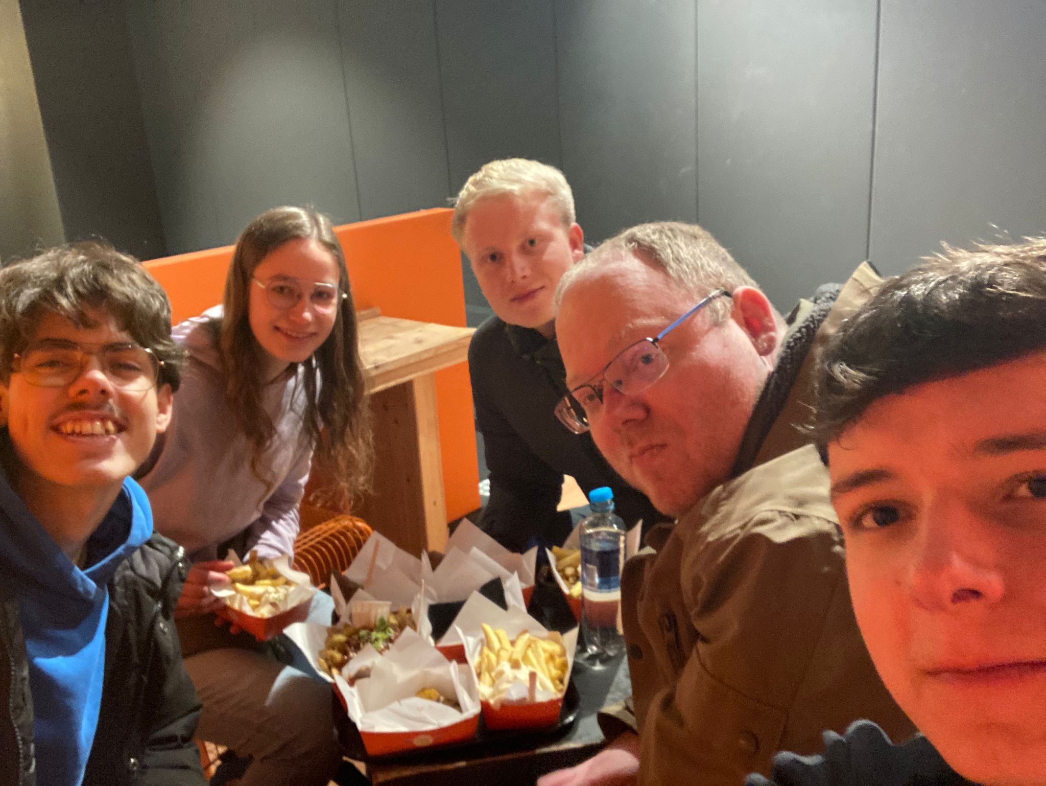 Rolinde zelf versloeg Polak in een scherpe Caro-Kann. Zal ongetwijfeld een theoretische lijn zijn, ik ken het ieder geval niet. Zwart maakte 1 grote fout en de witspeelster strafte dat hard af. De Middelburgers ondertussen waren toch wel wat onder de indruk van het bezoek aan Patat + More en verloren allebei een vervelende partij: ‘vreselijk verlies in scandi. Afgeruild tot compleet remise stelling en ik ging rare zetten doen.’ en Harmen : ‘Dramatische partij met wit tegen het Albin-counter gambiet. Rokeerde kort recht in zijn aanval en kon in 27 zetten opgeven.’ Tot zover dus de vierde ronde en tweede dag.